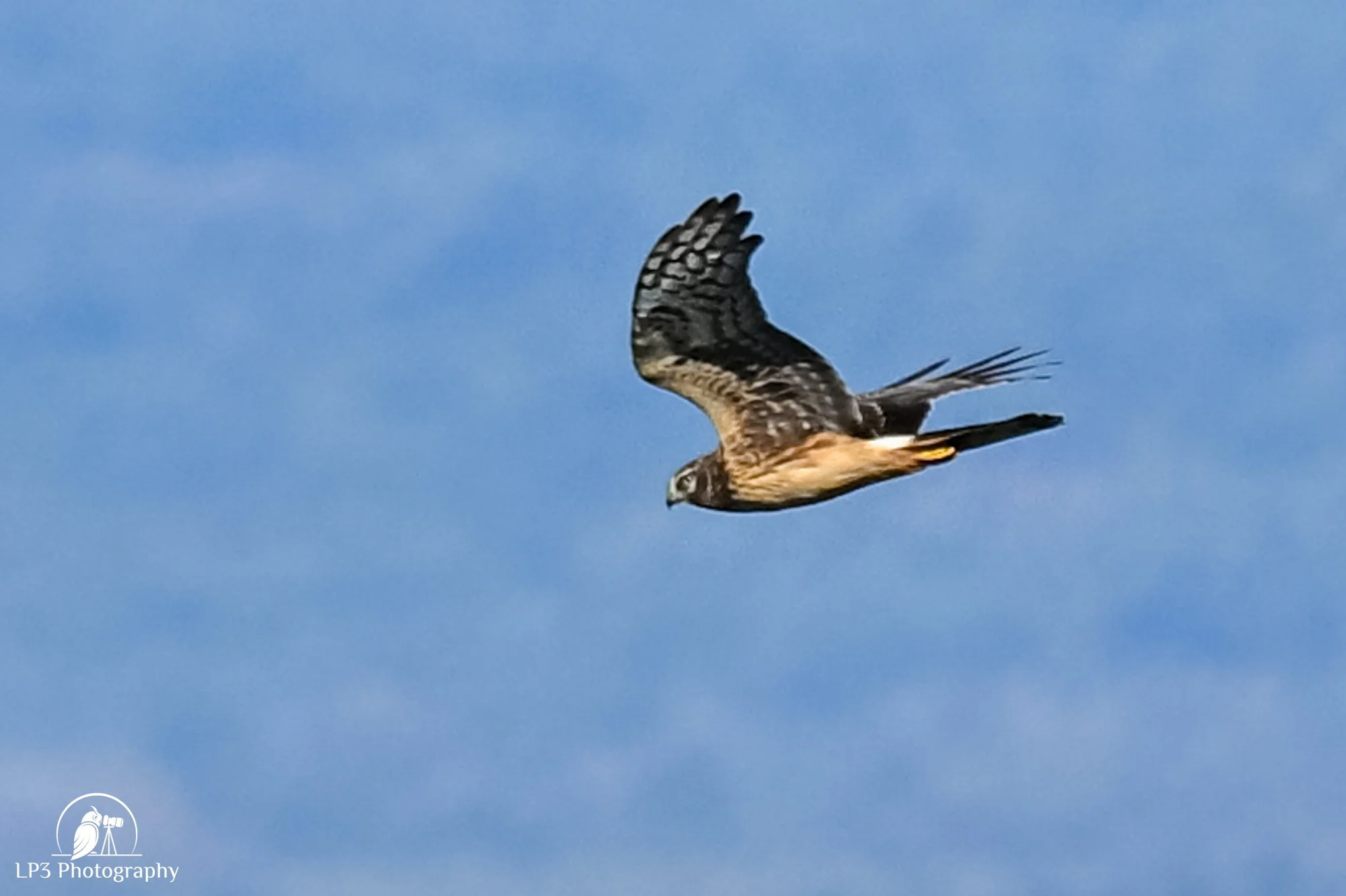 Back at the summit, we paused for a group photo, and were surprised when a small raptor flew by with prey in its talons that it proceeded to eat on the wing. While we debated what it could be, another raptor soared past — this one was undoubtedly a Northern Harrier with a distinctive white rump patch and owlish face. We later confirmed from photos that the first was an American Kestrel.
